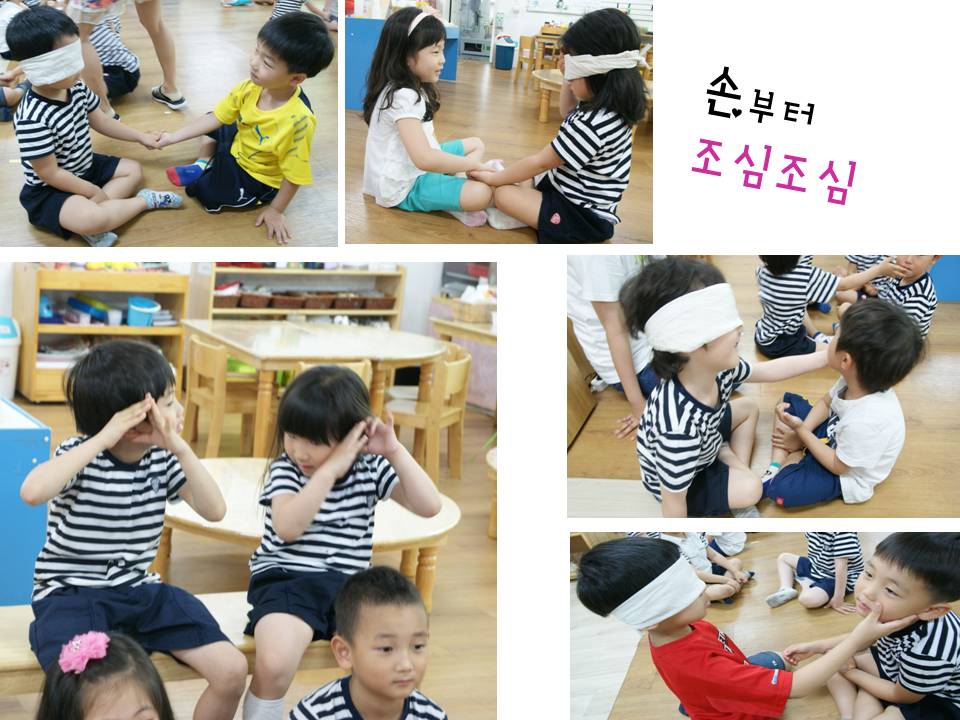 6월 새로운 인성놀이 주제는 <눈가리고 친구찾기>입니다. 이 주제는 시각장애인 이웃의 삶을 이해할 수 있는 시간을 갖고자 계획하였답니다.