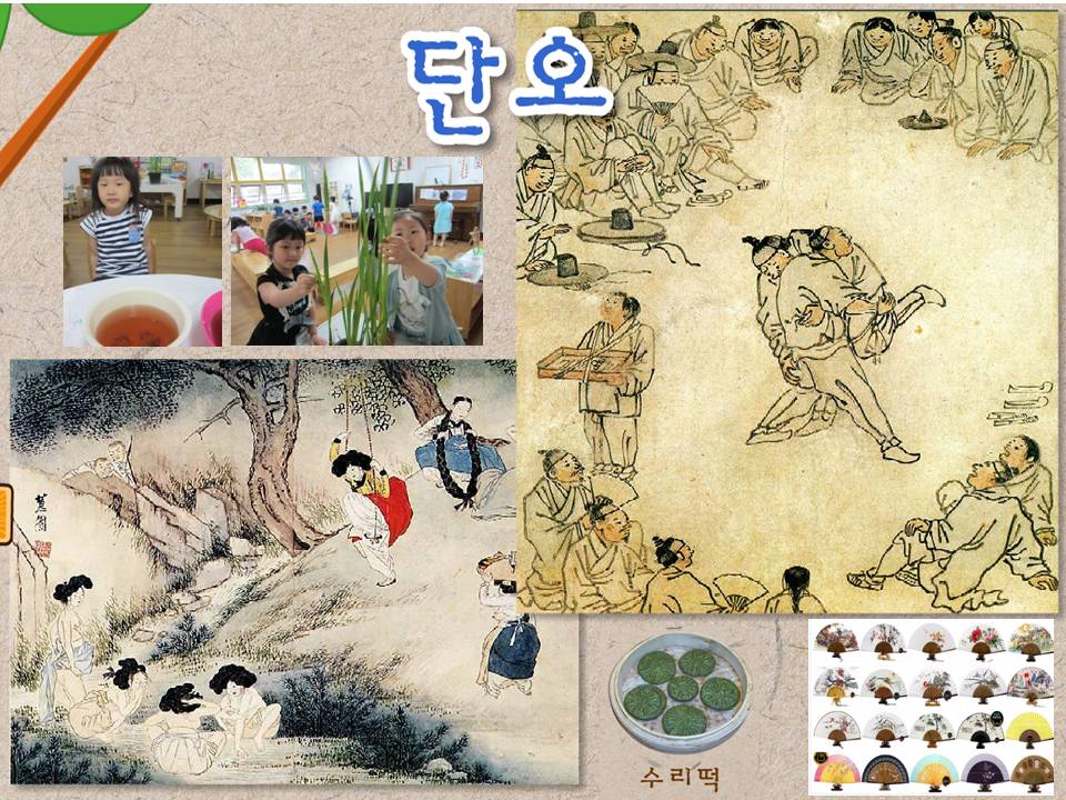 단오는 음력 5월 5일로 우리나라 명절 중 하나로 더운 여름이 오기 전 초여름의 계절이며, 농사를 끝낸 후 여름을 시원하게 보낼 수 있도록 여러 가지 세시풍속을 경험하는 날이랍니다. 여러 풍속 중 우리 친구들과 함께 창포물에 머리감기를 경험해 봅니다.