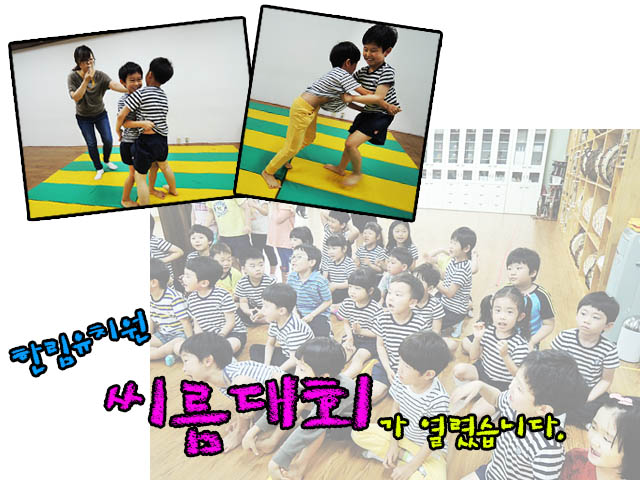 음력 5월 5일 단오를 맞아 한림유치원에서는 창포물에 머리감기에 이어 <한림씨름대회>가 열린답니다. 씨름에 관련된 동화를 듣고, 씨름을 해본 경험과, 씨름의 다양한 기술에 대해 이야기 나눕니다.