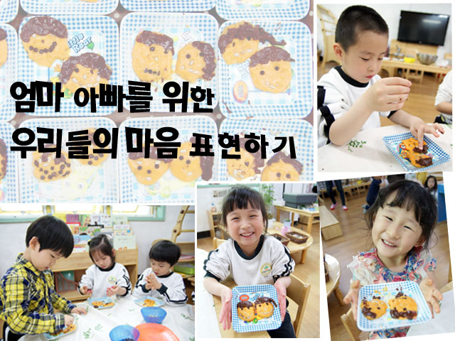 “엄마가 밥상차리기 쿠폰쓰면 내가 반찬도 옮기고 할 거예요.” “선생님 빨리 효도쿠폰 쓰면 좋겠어요~ 엄마 아빠 안마 해드리게요!! 발도 씻겨 드리고~~그럼 간지러워서 엄마 아빠 웃겠죠??” 부모님께 감사하는 마음을 표현하는 꽃잎반 어린이를 기대해 주세요.★인성-사랑을 나누는 특별한 요리★
