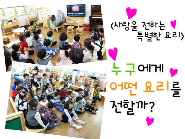 어린이들과 함께 5월의 인성놀이인 “사랑을 나누는 특별한 요리”에 대해서 이야기를 나누어보았습니다.