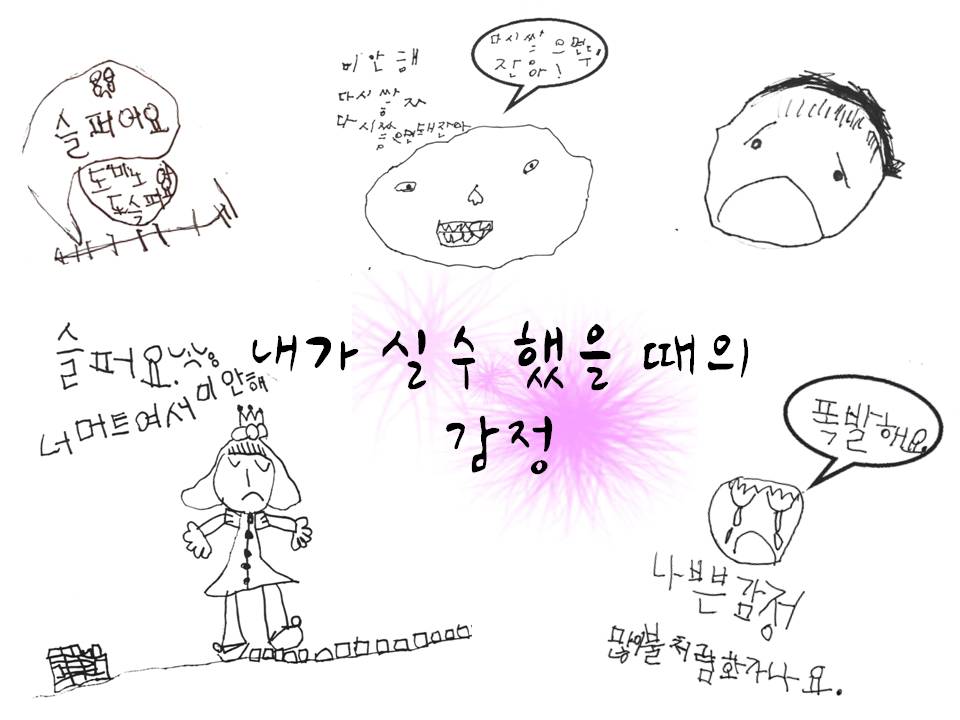 “속상해요.” “미안한 마음이 들어요.” “불처럼 화가 나요. 자꾸 쓰러지잖아요.” “일부러 그런 건 아니야. 너무 많이 무너졌어.(속상해.) 발로 차지마.” “친구들이 안 좋은 표정을 해서 무서워.”