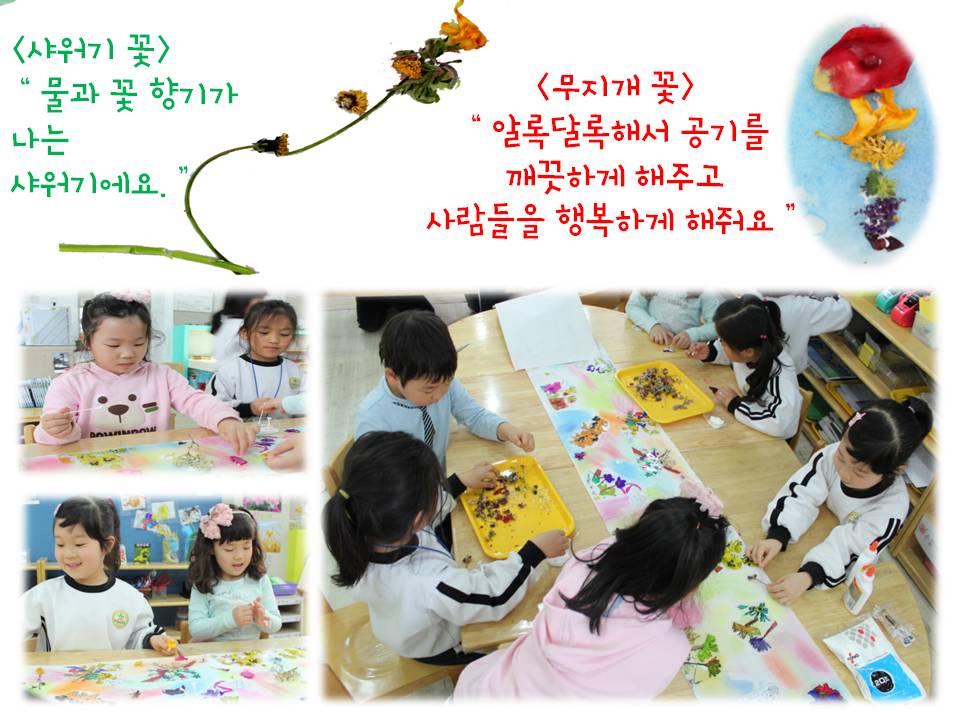 꽃을 이용하여 나비도 만들어보고 여러 가지 꽃이 합쳐진 상상의 꽃도 만들어봅니다.