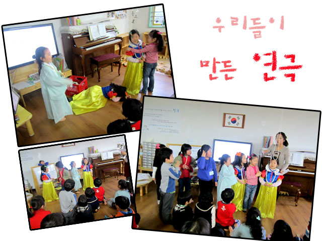 지난 시간 친구들의 피드백을 받고 좀 더 멋진 연극을 준비하기 위해 분주한 모습을 보입니다. -공주 옷도 입고, 마녀는 사과 준비해. - 내가 연극 더 길게 만들었어. 이거 보고 하면 된다. -스크린도 내리자. -야, 우리도 연극 보러가자.
