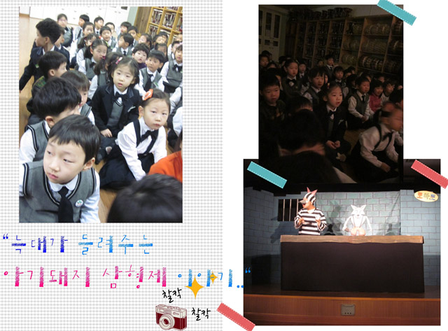 입학식 축하 공연으로 <늑대가 들려주는 아기돼지 삼형제 이야기>를 재미있게 보았답니다.
