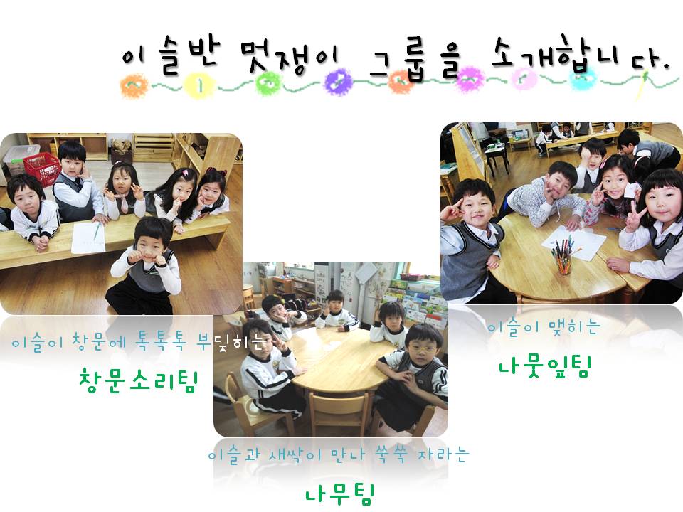 아이들의 이야기를 토대로이슬반에 여섯 개의 소그룹이 만들어집니다.