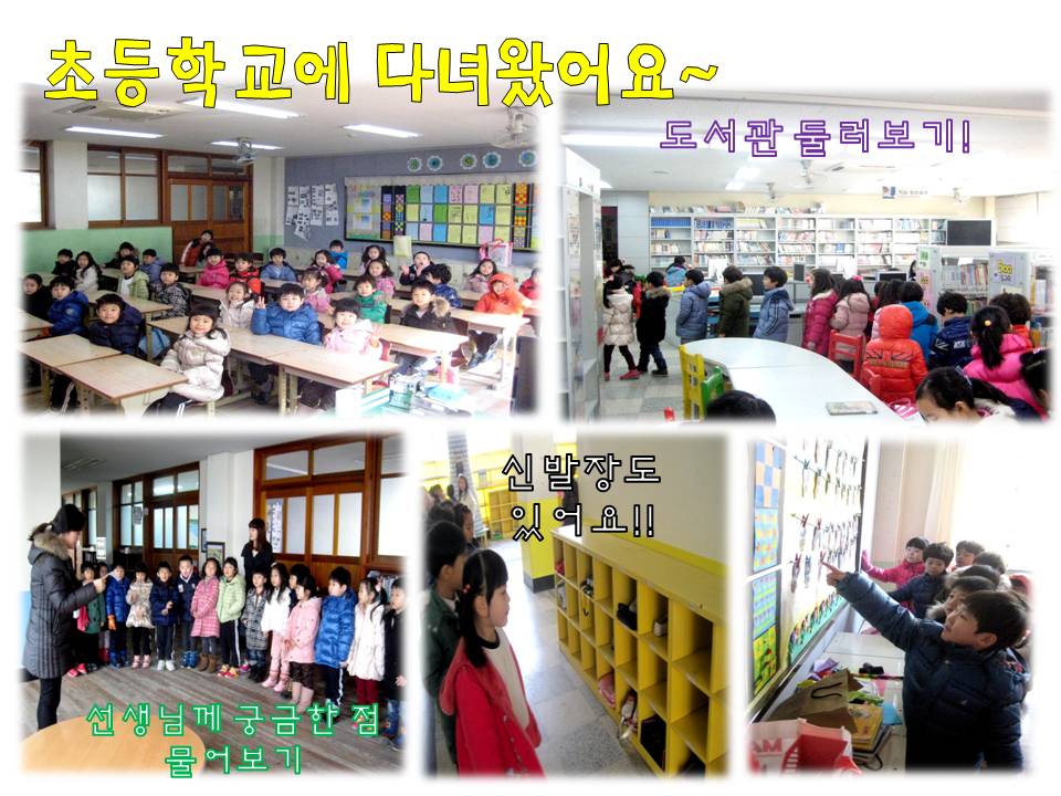 가정에서도 초등학교 입학을 하는 날까지 친구들이 설레고 기쁜 마음으로 초등학생이 될 준비를 해 나갈 수 있도록 많은 응원과 격려 부탁드립니다~^^<초등학교를 다녀왔어요>