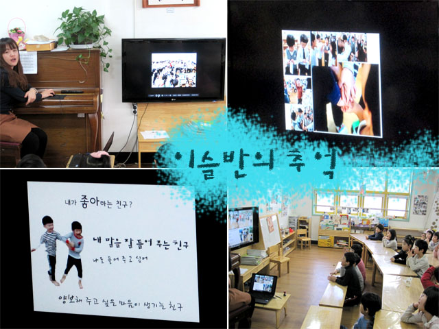 우리가 함께 보낸 행복한 시간들을 떠올려 보며 즐거워하는 아이들..저마다의 생각 주머니에 담긴 이슬반의 추억은 다르겠지만, 추억 속에 행복함과 설렘의 기억들은 영원히 기억되길 소망해 봅니다.
