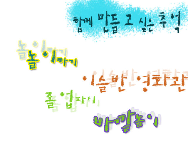 남은 몇일이 더욱 소중해진 지금! 이슬반 친구들이 함께 만들고 싶은 추억 네 가지를 정했습니다.
