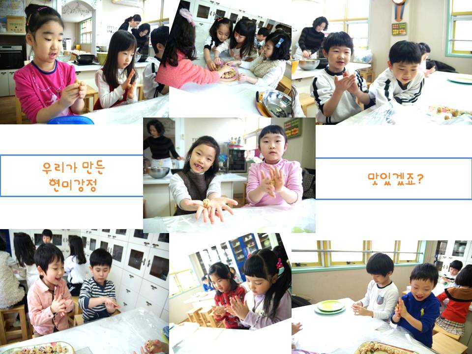 친구들은 저마다의 방법으로 강정을 만들었어요. 강정에 들어가는 재료가 다양하다는 것도 알게 되었답니다.