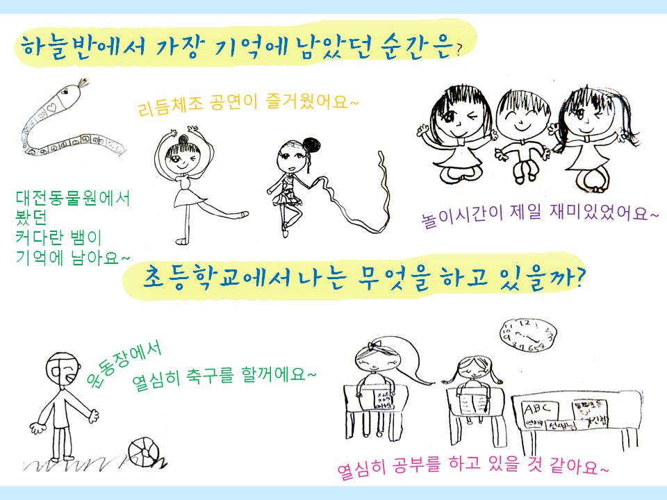 남은 시간 더 큰 세상을 향해 한 걸음 나아가는 하늘반 친구들에게 가정에서도 응원과 격려 부탁드립니다.