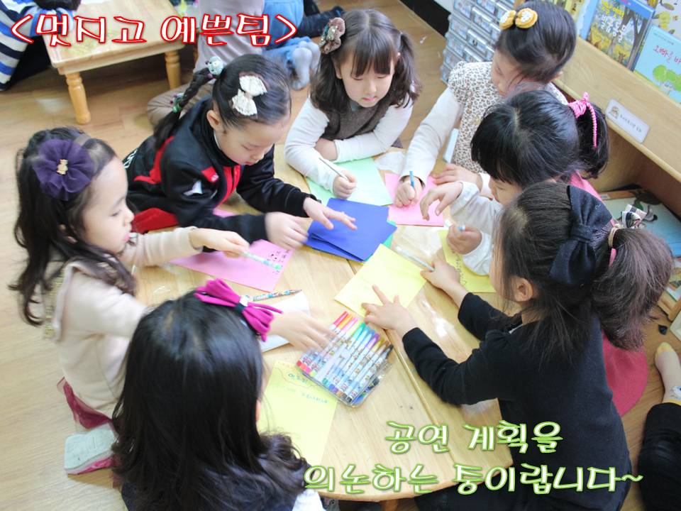 “예쁘고 멋진팀”의 공연 연습이 무르 익어가고 있습니다. 아이들은 성공적인 음악회를 위해 어떤 공연을 선보일지 구체적인 의논을 합니다.