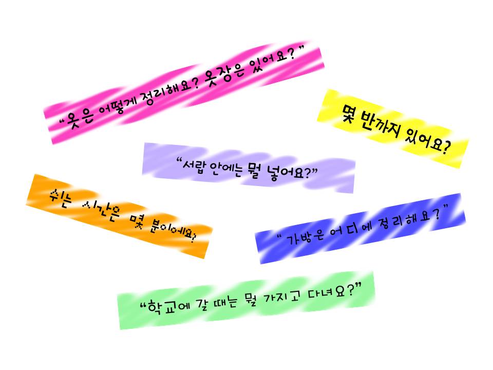 “학교에 갈 때는 뭘 가지고 다녀요?”