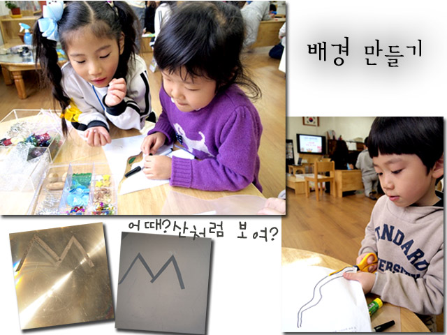 "(옛날옛날 깊은 산골짜기에 늑대와 발레리나가 살았대요.) 이 부분에서는 어떤 배경을 하지?" "깊은 산골짜기니깐... 산이 있겠지?" "맞아. 나무도 있어야 하고! 시냇물도~" 그러나 아직 그림자에 대한 지식이 명확하기 않아서인지 내가 생각한 배경이 그림자로 잘 나타나지 않아 자꾸만 배경 만들기를 반복하게 됩니다. 어린이들은 어떻게 그림자극 배경을 만들어 나가게 될까요?★기다려지는 우리들의 음악회★