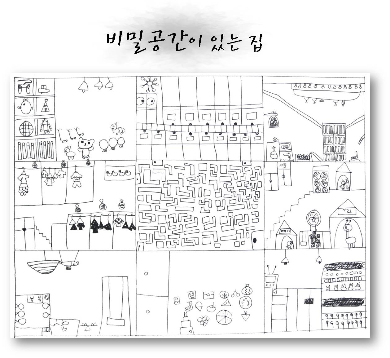 “엄마의 허락을 받지 않고 친구들을 초대해서 마음껏 먹고 노는 곳이 있으면 좋겠어.” “마법사나 요정, 스파이더 맨으로 변신할 수 있는 공간도 있으면 좋겠어.” “엄마가 싫어하는 강아지도 몰래 키울 수 있는 공간이 있으면 좋겠어.” “엄마 몰래 친구들을 초대해서 잘 수 있게 넓은 침실도 있으면 좋겠어. 친구와 자면서 비밀이야기를 나누면 너무 재미있을 것 같아.” “내가 커서 되고 싶은 꿈을 이룰 수 있는 공간도 있으면 좋겠어.”