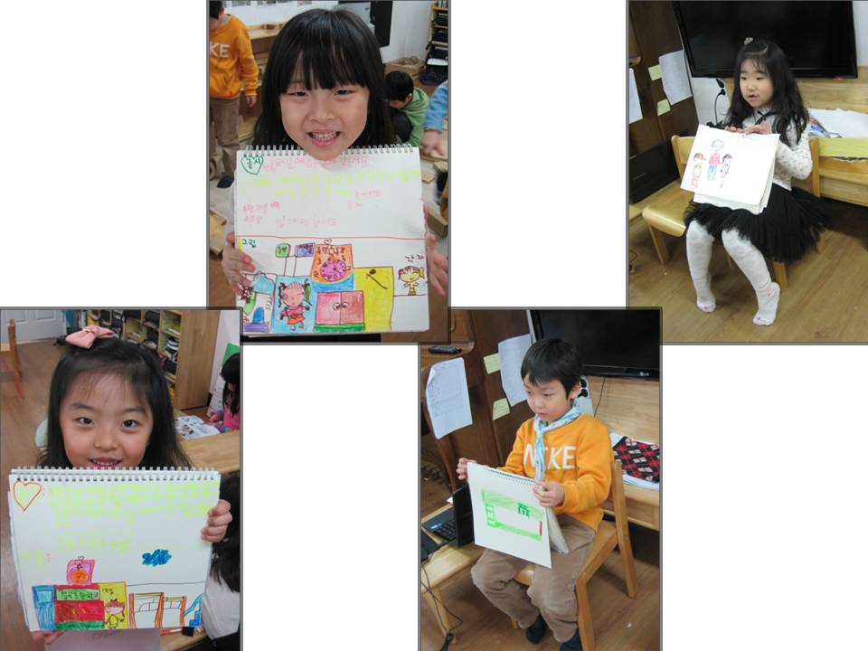 친구들과 이야기꽃을 피워가며 저마다 다양한 경험들을 그림과 글로 표현하였답니다.