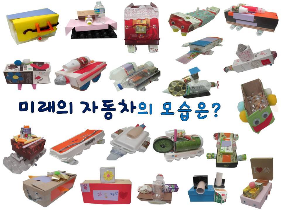 미래 자동차의 모습을 떠올리면서 다양한 재활용품을 활용하여 멋진 미래의 자동차를 만들어봅니다.