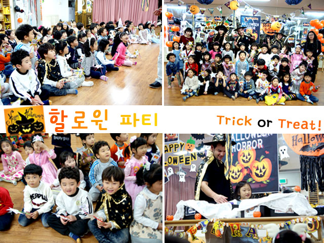 할로윈은 10월 31일을 겨울이 시작되는 날이라 여기며 밤이 긴 겨울이 다가오는 것을 두려워하여 유령 분장을 하고 다니던 서양의 풍습입니다. 여러 가지 사진을 보며 할로윈 데이의 분위기를 간접적으로 느껴본 새싹반 어린이들도 즐거운 할로윈 파티를 열어보았습니다. “친구를 초대해서 파티를 열어본 적 있어.” “파티 할 때는 맛있는 음식이 진짜 많아.” “신나는 음악도 나오고 !!” 함께 노래도 부르고 “Trick or treat!”를 외치기도 하며 다른 나라에 관심을 가지고, 다양한 문화를 경험해보는 뜻 깊은 시간이였습니다.