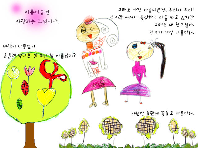 - 가장 아름다운 건 우리야! 우리. 친구들이 사이좋게 놀고 있는 모습이 아름다워.