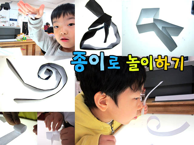 - 접어서 돌돌 말면 더 진하게 선이 생겨 - 종이를 리본처럼 묶었어 - 종이 작품 보니깐 마술 같다. - 종이는 끈처럼 엮었어 - 우와! 종이를 세울 수도 있어 - 종이는 왜 이렇게 잘 구부러지지? -종이는 딱딱하지도 않고 힘이 없기 때문에 이렇게 잘 구부러져
