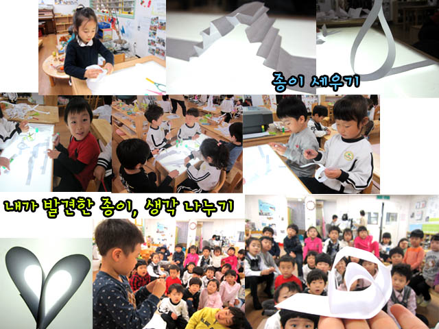 어린이들은 오직 종이만으로 놀이를 하면서 종이의 특성을 알아가고 종이를 변형시켜 놀이하며 탐색 합니다.