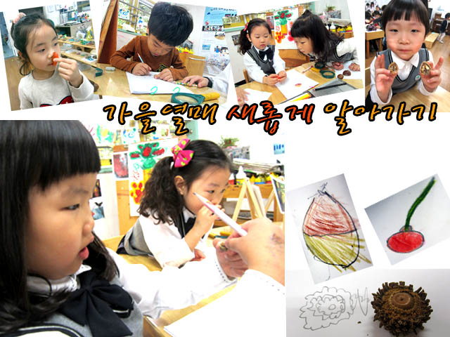 가을 산책, 가을 소풍을 통해 아이들은 가을의 변화를 발견하고 느껴봅니다. 이번 주는 가을 열매를 찾아보고 가정에서 가지고 온 가을 열매를 겉과 속을 비교 하며 오감으로 탐색 해 봅니다.