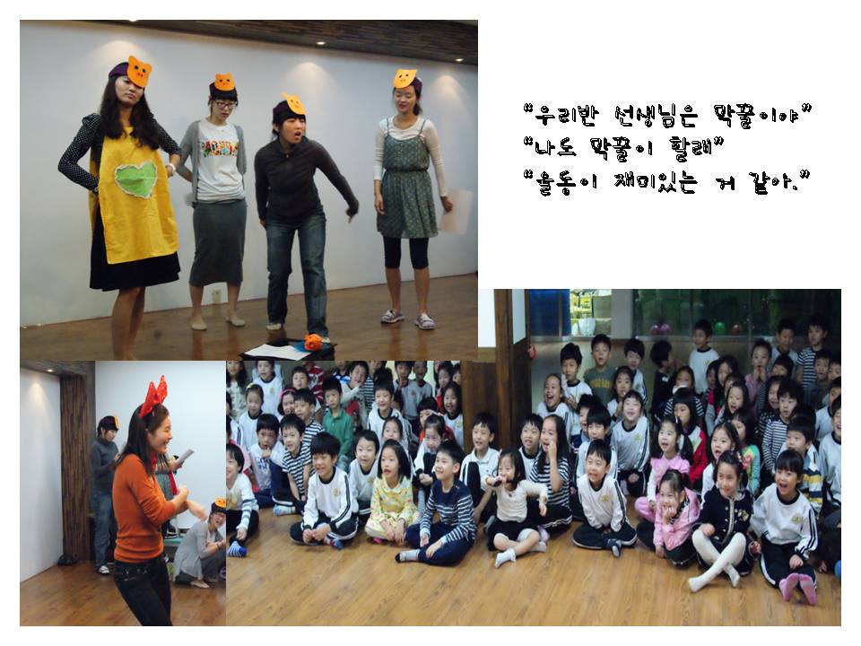 선생님들이 하는 동극을 보며 즐거워하고 동극이 어떤 것인지 알 수 있었고 동극에 관심을 가질 수 있었던 시간이었답니다.