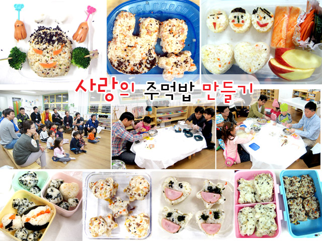부모님과 함께 하는 날. 가족과 함께 누군가를 위한 <사랑의 주먹밥>을 계획하고 만들어 보는 시간을 가졌습니다. 가족과 함께 계획한 주먹밥은 각자의 특성에 맞춘 주먹밥이었는데요. 새싹반 가족의 주먹밥은 재료에서부터 맛, 색, 주먹밥의 형태까지 모두 저마다의 독특한 특성을 지니고 있습니다. 모두가 <주먹밥>을 만들었는데 그 주먹밥은 우리 개개인이 다르듯, 창의적이고 독창적인 모습인 것을 알 수 있었습니다.