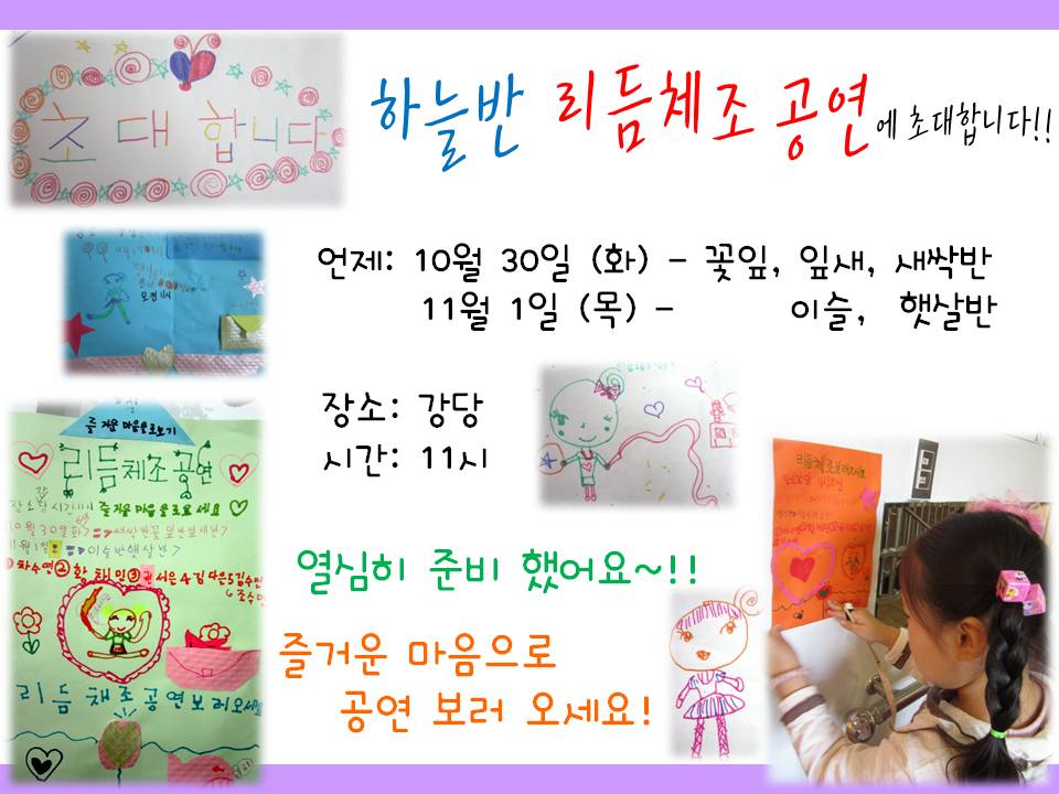 하늘반의 특별한 리듬체조 공연.. 기대해 주세요!!<소리가 가득한 음률 영역>