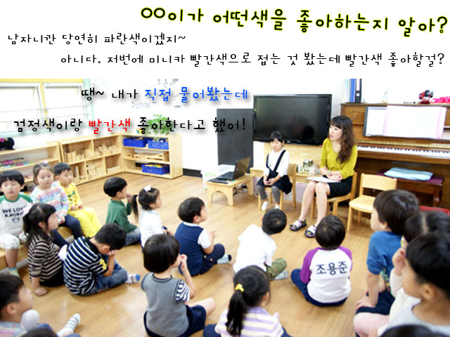유아: 그런데 우리가 어떻게 친구가 좋아하는 색 다 기억하지? 잊어먹겠다~