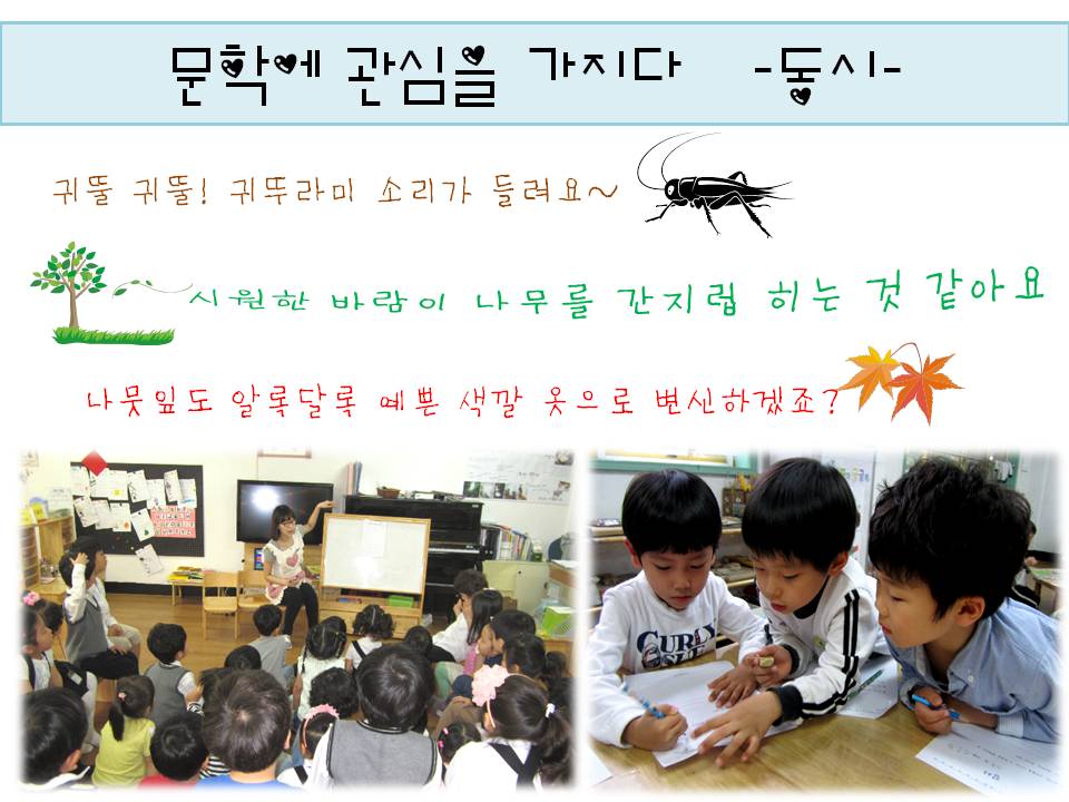 그리고 가을과 관련된 동시를 소개하고 읖어보는 시간을 가져보며, 동시에 관심을 가져봅니다."가을에 듣는 소리도 동시를 지은 것 같아요~"