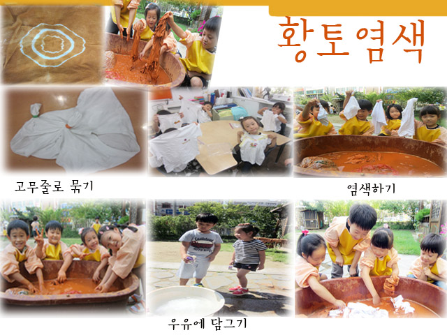 자연에서 찾을 수 있는 색은 아주 다양하답니다. 가을을 맞아 자연의 색<황토 염색>을 하기로 하였답니다.