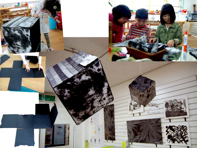 “이렇게 네모 모양이 여섯 개가 있으면 박스가 되요. 이쪽에 붙여도 박스가 되고 다른 쪽에 위 아래 붙여도(생각을 해보다가) 되겠다! 박스 모양이 되겠다.”
