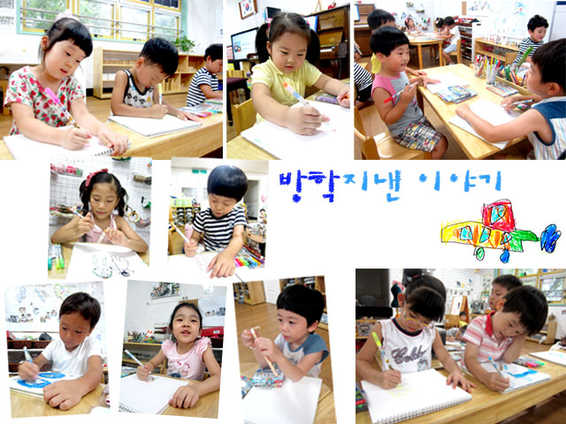 개학날~ 서로 방학동안 무엇을 하며 지냈는지 이야기하기 바쁩니다. 우리는 친구들의 방학 지낸 이야기를 귀 기울여 들어보았답니다.