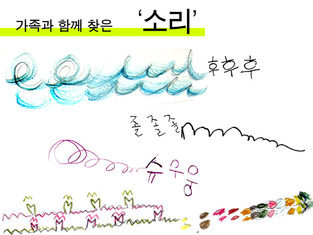 친구들과 함께 방학동안 찾은 소리에 대해 이야기를 나누며 귀 기울여 보면 수많은 소리가 있다는 것을 다시금 생각할 수 있었고, 나와 같은 소리를 들은 친구는 다른 느낌으로 받아들이고 표현할 수 있다는 것도 알 수 있었답니다.