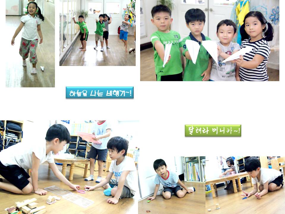 친구들은 미니카경주와 비행기 날리기 시합을 열심히 하고 있답니다.