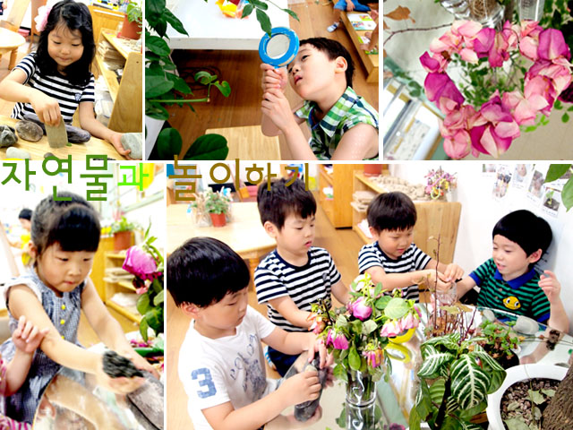 관찰영역에는 여러 가지 식물도 있지만 유치원 주변이나 길, 바다, 산 등 곳곳에 살고 있는 <돌>도 있습니다. 어디서든지 쉽게 볼 수 있는 돌을 새싹반 어린이들은 다양한 방법으로 탐색하기를 즐깁니다.
