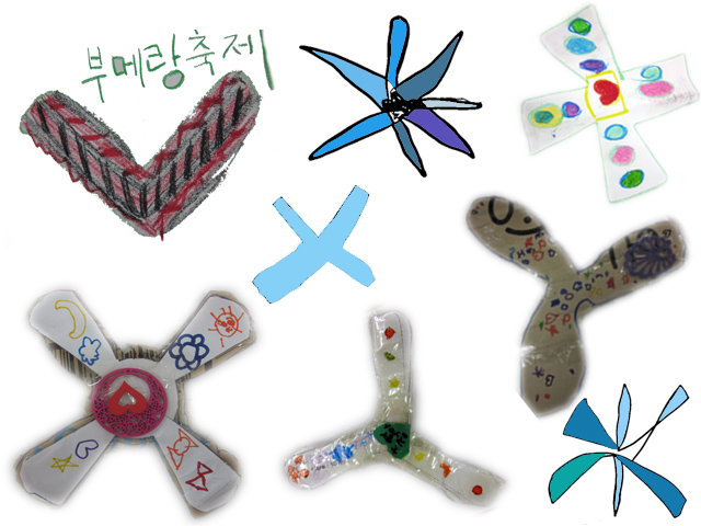 내가 만든 부메랑을 잘 날리기 위해 다양한 방법으로 자세를 연습해 봅니다. “팔을 안쪽에서 밖으로~” “셋! 할 때 날리는 거야.” “부메랑이 방향을 틀었어.” “진짜 재미있었어.” “조금 아쉽다~너무 빨리 끝나서~”#. 부메랑 축제를 마치며..