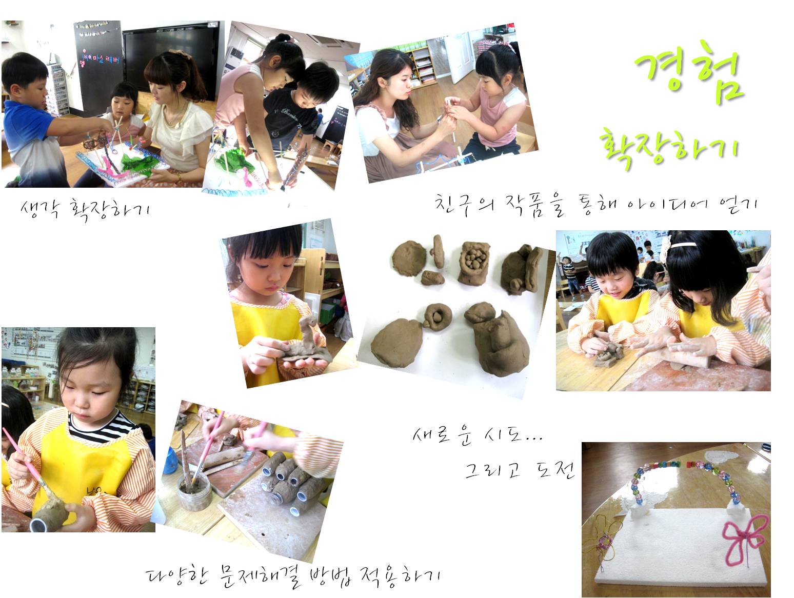 “난 찰흙으로 튼튼한 다리를 만들 수 있는 방법을 찾았어!” “철사가 굵어서 구부리기 힘들었는데 엄마가 도와주셔서 멋지게 완성할 수 있었어!”
