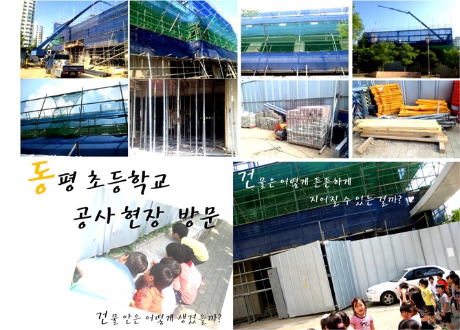 집을 만들 수 있는 재료에는 어떤 것들이 있을까요? 집을 지을 수 있는 다양한 재료를 알아보기 위해 우리나라 집의 변천사를 알아보며 이야기 나누어 보았습니다. “움집에는 문이 없어서 무서운 동물이 함부로 들어올 수 있을 것 같아요.” “집 안이 깜깜할 것 같아요. 사람들이 안에서 어떻게 생활했을지 궁금해요.” “움집은 비도 세고, 바람이 불면 날아갈 것 같아요.” “어떻게 지푸라기를 높이 쌓아올려서 집을 만들었는지 궁금해요.” “우리 왕할머니도 초가집에 살고 계세요.” “기와집은 안에 들어가면 넓고 시원할 것 같아요.” “기와로 만든 지붕이 멋있어요.” “아파트는 높기 때문에 가장 많은 사람이 살 수 있는 것 같아요.” “옛날 보다 지금 우리가 살고 있는 집이 더 튼튼한 것 같아요.”“우리가 사는 집은 어떻게 무너지지 않고 튼튼할 수 있을까요?” 궁금증을 해결하기 위해 유치원 부근의 공사현장을 방문합니다. “공사하는 소리가 들려. 망치질 하는 소리 같아.” “그물망도 쳐져 있어. 공사를 하고 있는 재료가 밑으로 떨어지면 사람들이 다칠 수 있으니까 망을 쳐놓았나 봐.” “우와 철로 된 기둥이 진짜 많다!” “건물을 튼튼하게 고정시키려고 철을 많이 세워 두었나 봐.” “저 철은 어떻게 세운거지?” “저 기계는 무슨 일을 할까? 높은 곳까지 건물을 만드는 재료를 올려주는 건가?” “어? 시멘트벽도 보인다! 2층 3층에는 나무판으로 받쳐 놓았네?” “집을 만들기 위해서는 또 어떤 재료가 필요할까?” “공사하는 아저씨다! 어떻게 저기 높은 곳까지 올라가셨지?.” 건물을 짓는 모습을 보며 집짓는 과정에 대한 궁금증은 더욱 커집니다. 집은 어떤 과정을 통해 지어 지는 걸까요?<나만의 우표&우편번호의 비밀>