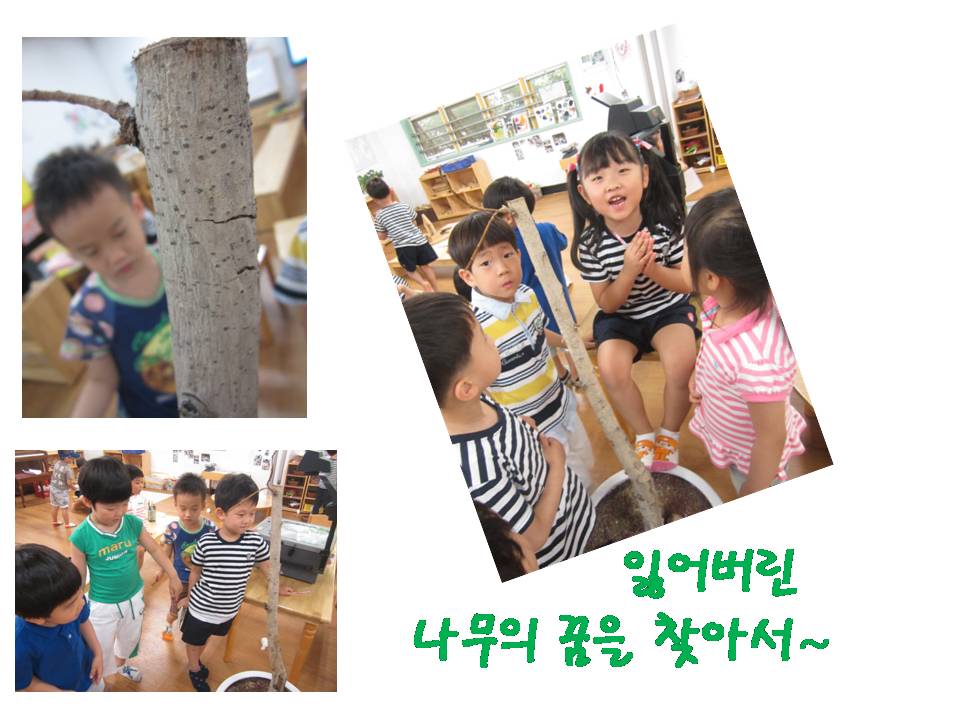 우리 꽃박람회에서 나무들은 어떤 모습 하는지 보고 와서 나무를 꾸며주면 되잖아. 어린이들이 생각하는 꿈이 있는 나무는 어떤 모습일까요? 어린이들의 이야기를 기대 해 봅니다.잎새반 관찰영역에 있는 어항에는 물고기 다섯 마리가 있습니다. 어느날 아침, 많은 어린이들이 어항 앞에서 놀란 표정으로 이야기를 합니다.