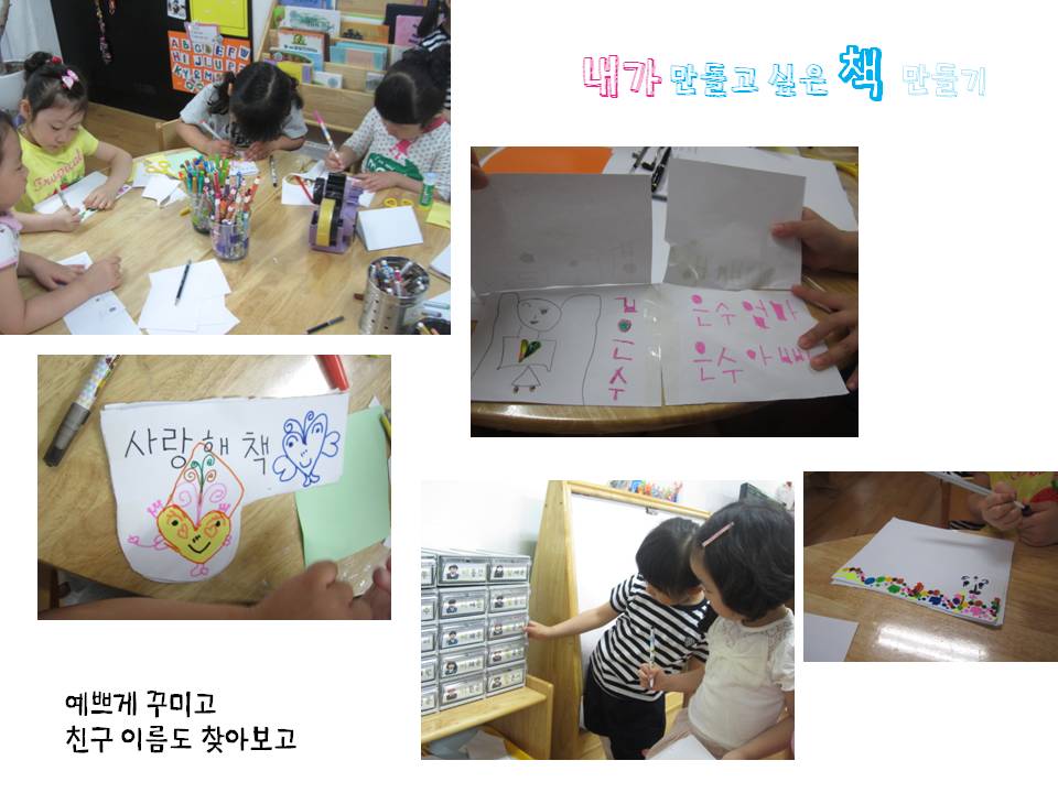 <잎새반 친구책 만들기>자유선택활동 시간에 책 만들기를 즐겨하던 어린이들이 오늘도 각자 가족책, 공주책, 친구책, 사랑책 등 만들고 싶은 책을 만들고 있습니다.