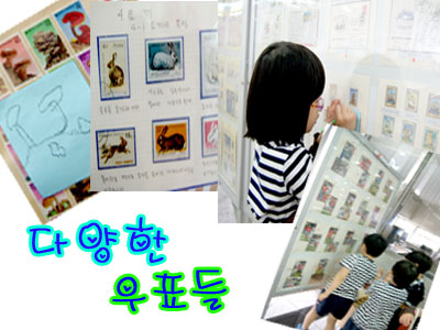 다른 곳에는 많은 우표들이 전시되어 있는 곳이 있었어요. 위인들이 그려진 우표, 대통령의 모습이 그려진 우표, 축제를 기념하는 우표, 동물 우표 등 여러 우표들이 있었답니다. 이 우표들 중에서 기억에 남는 우표를 그림으로 그려보기도 하였답니다.