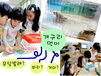 “무당벌레 잡아 왔어요, 개구리 먹이로 줄려고요”