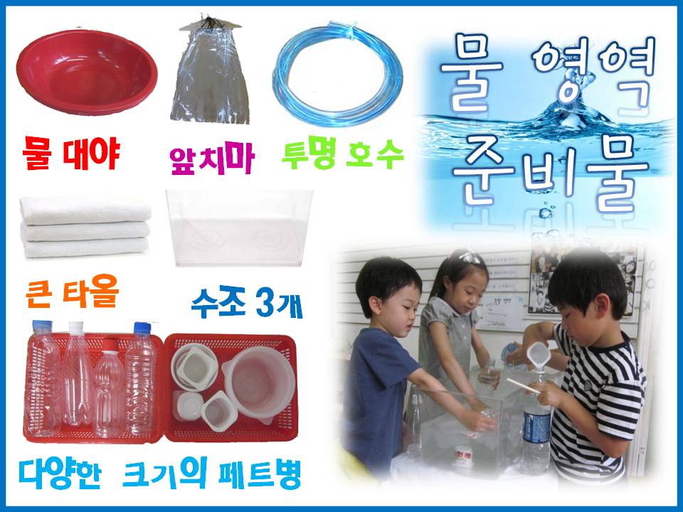 유아들의 의견을 반영하여 더 큰 수조도 구하고, 물 영역 전용 긴 앞치마를 만들었답니다.