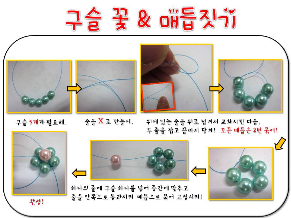 "꽃모양을 사용해서 목걸이랑 팔찌랑 만들면 더 예쁠 것 같아~