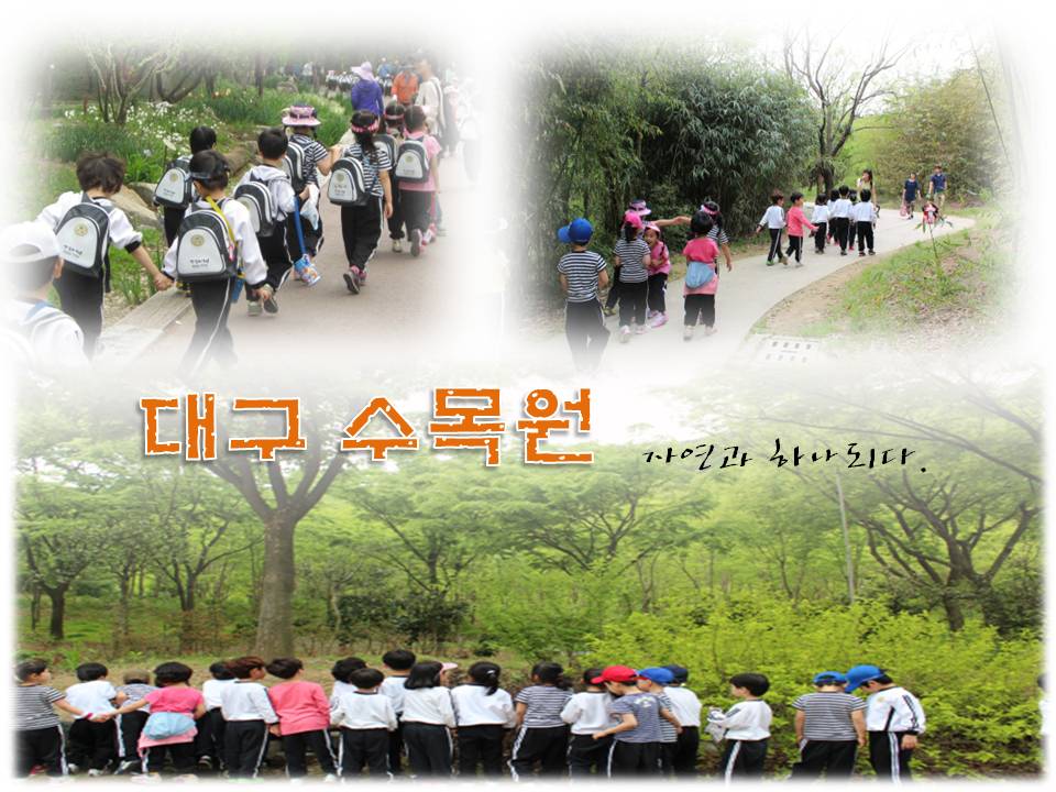 드디어 <수목원> 도착! 수목원은 푸른 나무와 향기로운 꽃 향기로 가득했답니다.