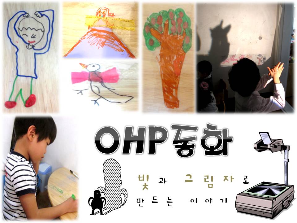 종이에 그림을 그려서 동화를 만들던 친구들이 골판지, 한지 등 다양한 종류의 종이를 이용하여 동화책을 만들어봅니다. “나만의 특별한 동화책을 만들고 싶어! 좋은 방법이 없을까?” 아이들은 곰곰이 생각해봅니다. “투명한 종이에 그림을 그리면 어떻게 될까?” OHP용지에 네임펜을 이용하여 나무, 강아지, 오리, 구름 등 내가 좋아하는 그림을 그려봅니다. 그림 위에 알록달록 색칠을 한 후 OHP 위에 올려보는 아이들..“우와~ 내가 그린 그림이 벽에 나타났어!” 빛과 그림자를 이용하여 멋진 장면을 연출합니다. 아이들은 그림을 이용하여 이야기를 만들어냅니다. OHP영역에서의 동화 만들기!! 앞으로 풍부한 상상력이 지어낸 멋진 동화를 기대해주세요.<나뭇잎 표상하기>