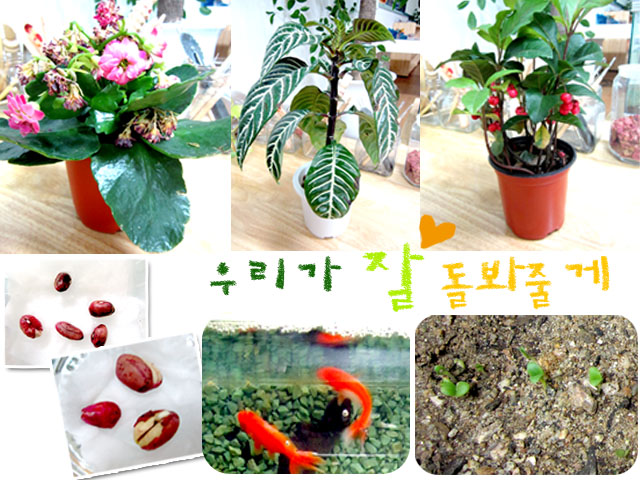 우리처럼 생명이 있는 식물과 물고기를 돌보기 위해 어떻게 하면 좋을지 이야기 나누어 보았습니다.