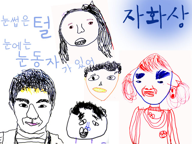 먼저 사진을 프린트한 뒤 그 위에 투명한 OHP필름을 올리고 사진 그대로 따라 그리기를 하였습니다. 머리카락도 한 가닥씩 있다는 걸 알게 되고 눈썹 또한 털 한 가닥 한 가닥이 모여있다는 것을 알게 되었답니다. 그리면서 즐거워도 하고 다 그린 뒤 OHP에 그려져 있는 모습만 보고도 친구를 알아 맞힐 수 있었답니다.